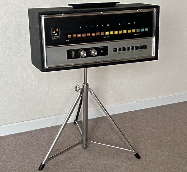 Maestroのビンテージリズムマシン上位モデルRhythm King、いわゆるドンカマですね。イナタい音します。デザイン、サウンドともにビンテージ・コンボオルガンとの相性バッチリです。スライ・ストーン氏も愛用していたとか。レアなオリジナルスタンド付属。