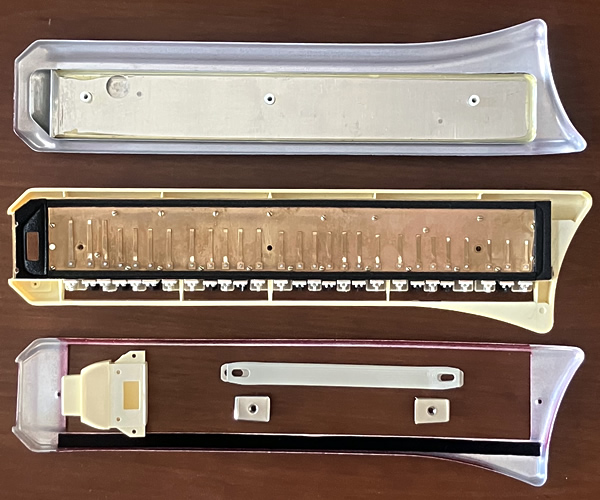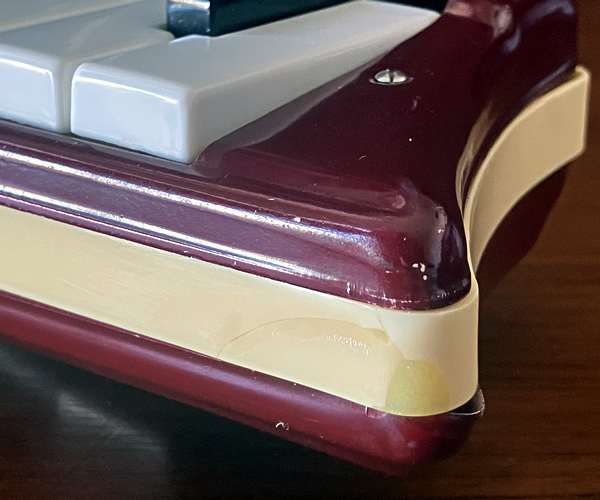 分解して洗浄し衛生的にも問題ありません。鍵盤はショートスケールのコンパクトサイズ。ボディはプラスチック、表裏のボディカバーは金属製。