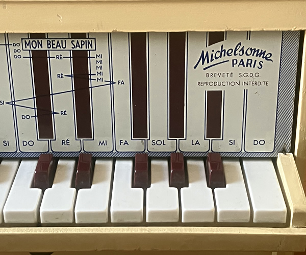 仏ミシェルソンヌの25鍵ビンテージトイピアノ…トイピアノ愛好家ならば一度は手にしていただきたい美しいトイピアノです。今回ご紹介するのはアイボリーボディが美しい初期モデル…