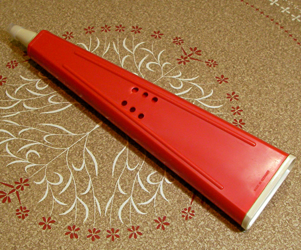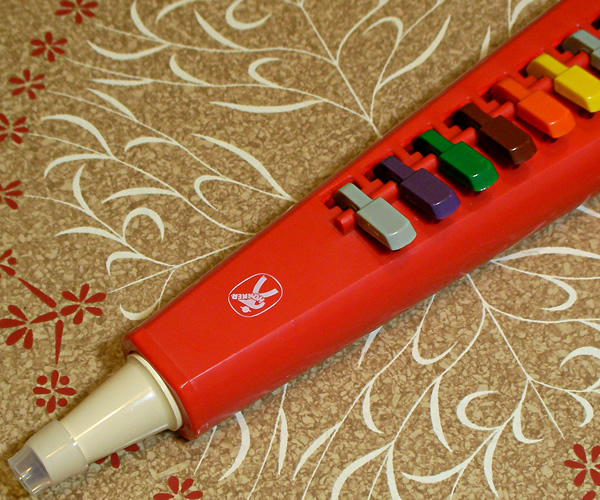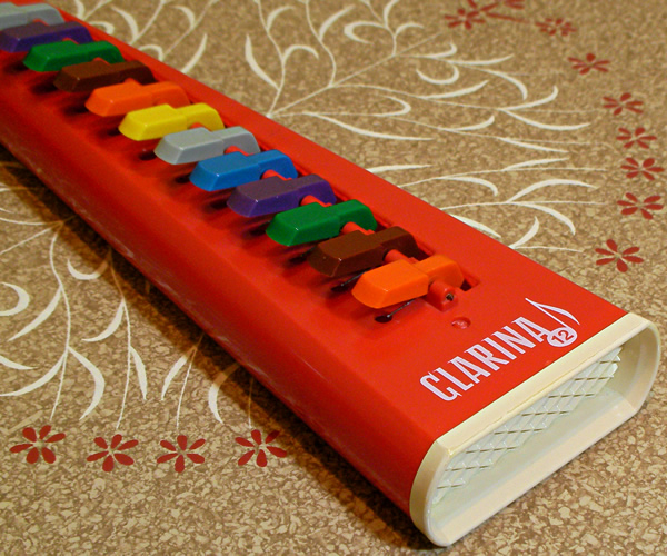 ドイツHohner社のビンテージ鍵盤ハーモニカ。その名の通りクラリネットをイメージしたトイ楽器です。Gメジャー音階のみ演奏可能(D, F#, G, A, B, C, D, E, F#, G, A, Bの12音)。マウス部の割れを補修してアクリル塗料で塗装しています。通常使用では塗装が剥がれることはありませんが安全面を考慮してシリコンチューブを装着。その結果、息の吹き込みもスムーズになり演奏操作性もアップしました。