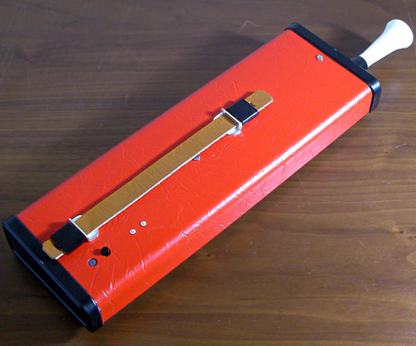 底面カバーは金属製、本体鍵盤部はプラスチック製(空気吹き込みパイプは金属製)。当時の商品タグ付きです。