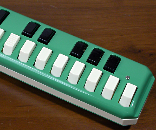ドイツ・ホーナー社のビンテージメロディカsoprano後期タイプです。ユニークなボタン式鍵盤を採用、淡いグリーン&ブラックの配色もGOOD!外部内部