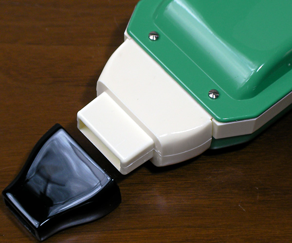 水抜きボタンを押し、強く吹いて水滴を取り除いてください。