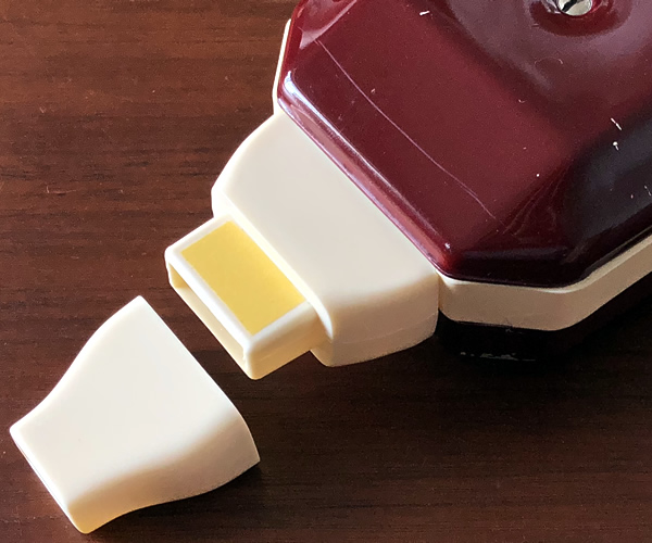 水抜きボタンを押し、強く吹いて水滴を取り除いてください。
