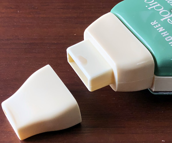 水抜きボタンを押し、強く吹いて水滴を取り除いてください。