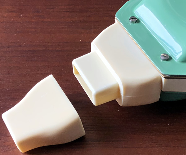 ドイツ・ホーナー社のビンテージメロディカsoprano、初期タイプです。ユニークなボタン式鍵盤を採用、淡いグリーン&ブラックの配色もGOOD!外部内部