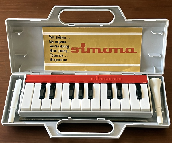 旧東ドイツ・Simonaのビンテージ鍵盤ハーモニカExpovita、中古ですがほとんど使用感なく美品です。小型でシンプルデザイン、本体ボディ&鍵盤はプラスチック製。同じ東ドイツの
