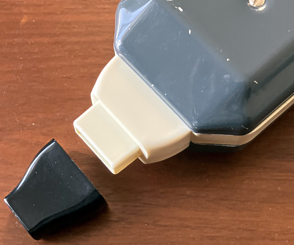 水抜きボタンを押し、強く吹いて水滴を取り除いてください。