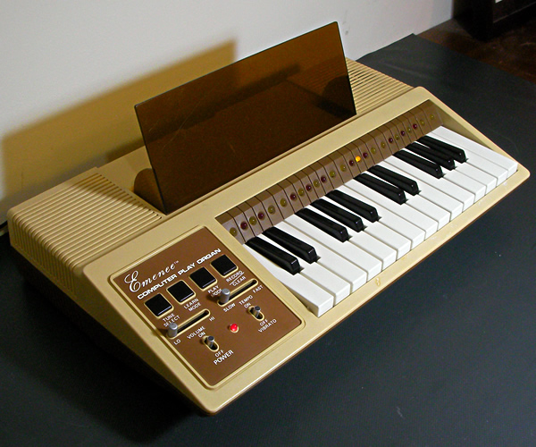 1981年製ミニオルガンです。洗練されたデザイン、LEDを使用した演奏学習システム、本格的なビブラートエフェクトなど、すべてがクール!organ69現時点でのトップオブ・ミニオルガンに認定させていただきます:-)