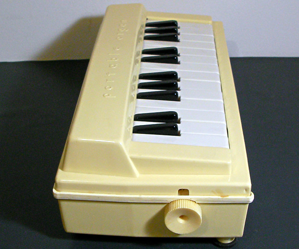 60〜70年代日本製ミニオルガン。内部に設置されたモーターで風を起こし鍵盤をプッシュすることで各音階のリードを鳴らす仕組み。足踏みオルガンやアコーディオンと基本的には同様の構造です。「ウィーン」というモーター回転音が若干うるさい気もしますが、それもまたノスタルジック。演奏用としてはもちろんオブジェやディスプレイとしてもオススメ!