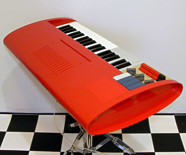 以前入荷のPOP3もこのタイプ)をよく見かけますが、本機はリズムマシン&ベース鍵盤付コンボオルガン仕様のレアモデル。レトロフューチャーなプラスチックレッドボディ!素敵ですね。Bontempiのビンテージ鍵盤の多くは各KEYに設置されたチューニング用電子部品が不安定なためチューニングが正確なものはほとんどないのですが、本機はその電子部品を安定した現行品と全交換してますのでチューニングはほぼ正確に調整できております。また各KEYの発音スイッチである接点ピンが劣化していたため全ピン