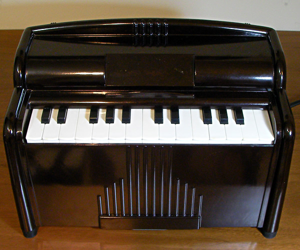 1950年代アメリカ製ミニオルガン再入荷です。内部に設置された電気タービンで風を起こし鍵盤をプッシュすることで各音階のリードを鳴らす仕組み。足踏みオルガンやアコーディオンと基本的には同様の構造です。優しく温かな音色が郷愁を誘います。アメリカンビンテージなルックスも素敵ですね。後期生産品でしょうか、タービン音小さめです(動画参照)。
