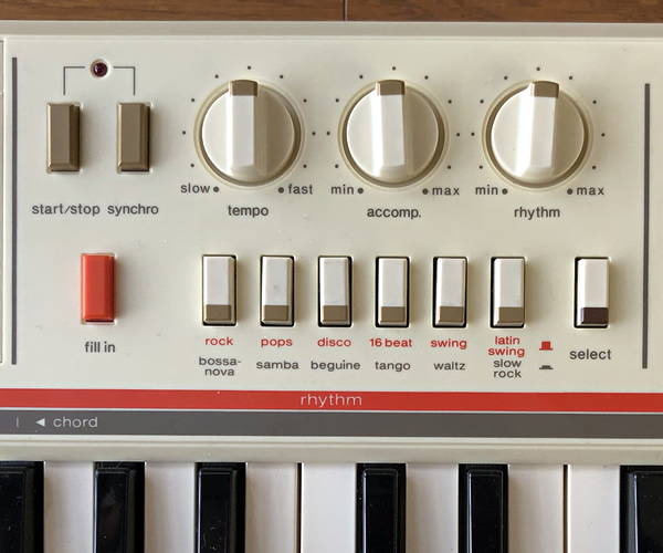 ・rhythmセレクトスイッチ(12種[6×2]):rock/bossa nova, pops/samba, disco/beguine, 16 beat/tango, swing/waltz, latin swing/slow rock