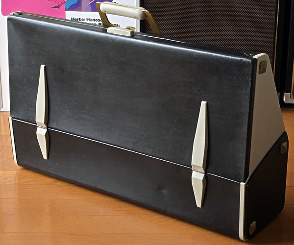 米ニューヨークの老舗アコーディオンメーカーExcelsior社のコードボタン付き電気式リードオルガン(内部に設置された電気タービンで風を起こし鍵盤をプッシュすることで各音階のリードを鳴らす仕組み)。鍵盤部はオクターブのダブルリードでアコーディオンぽい深みのある音がします。また金色菱形パーツ、譜面入れも兼ねたリッド(蓋)、ユニークな形状のボディデザインなど非常に丁寧に作られています。
