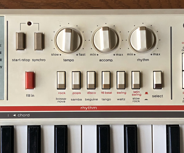 ・コントロールボタン:rhythm(スタート/ストップ), synchro, fill in