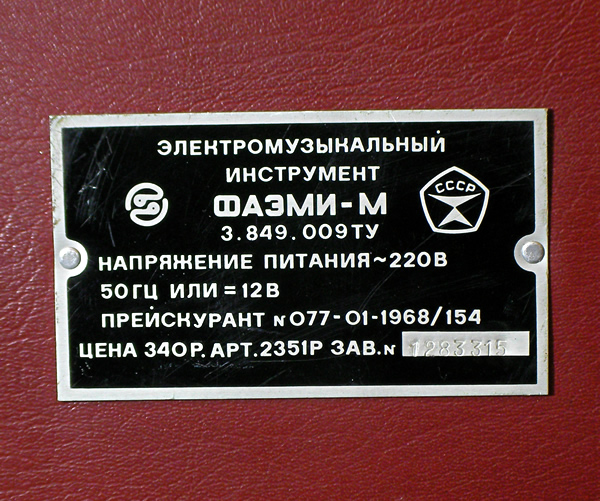 Faemi M Customized 旧ソ連製のコンボオルガンFAEMI Mです。海外サイトではアナログシンセと紹介されることが多いようですが4オクターブ(16',8',4',2')音ミックスが音作りの基本となってることからorgan69ではオルガンにカテゴライズしました。エフェクトにトレモロ/ビブラート/サステインを装備。サステインボリュームを最大にし持続発音することでオルガンぽく演奏できます(サステインボリュームを絞ると80年代FM音源のエレピ風減衰発音)。縦回しのコントロールノブがユニークですね。小型ですが金属ボディの頑丈で高級感ある作り。標準アウトプット&ローランド系エクスプレッションペダル・ジャック装備、ACアダプター対応など日本仕様にカスタマイズしております。